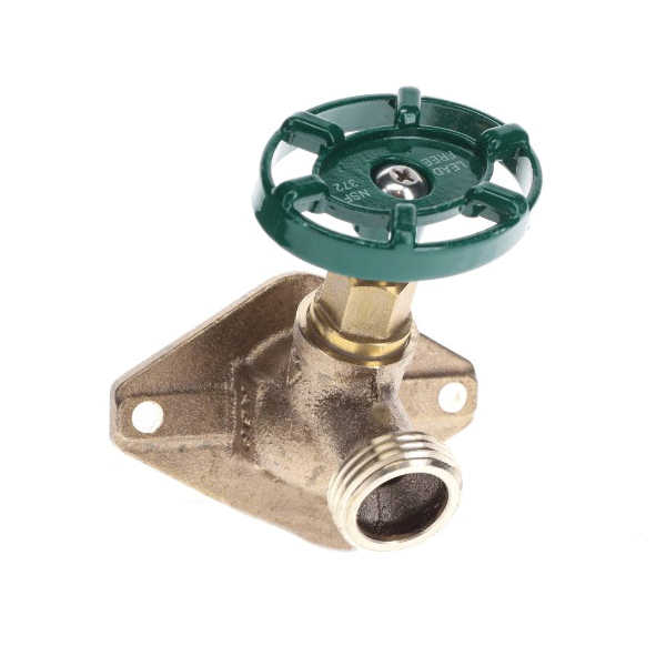 The arrowhead brass 255XLF Series has a 1/2 in FIP thread x 3/4 in MHT - XL flange and are made of heavy-duty lead-free brass and feature an oversized 3-1/4 in wide flange providing extra coverage for installations with larger holes where the tube extends from the wall or those requiring wider spread wall-mounting locations where previous screw-mount have deteriorated. The 255XLF features our exclusive one-piece O-ring bonnet stem design for easy operation and years of service with fewer parts to maintain, repair or replace.